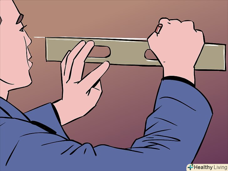 Піднесіть кронштейн до стіни в тому місці, де ви плануєте навісити полицю. зробіть позначки олівцем. Рулеткою відміряйте розташування кронштейна з протилежного боку.