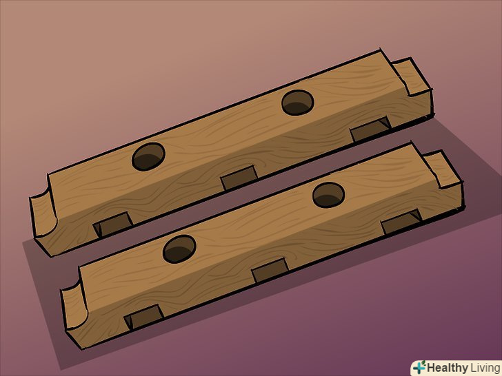 Знайдіть кілька цеглин і дерев'яних дощок. Дошки для полиць повинні бути одного розміру. Якщо немає, доведеться відпиляти одну з них до однакової довжини.- Можна використовувати шлакобетонні блоки, і тоді вам знадобляться всього по одному на кожну сторону – краще, ніж по дві цегли.