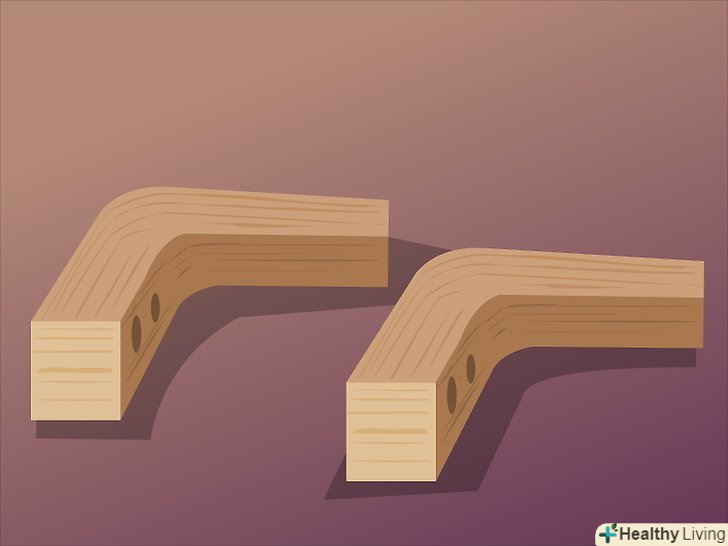 Прибийте або посадіть на клей клини до першої вертикальної опори біля основи. їх потрібно розміщувати на тій стороні опори, яка буде дивитися всередину.- Те ж саме виконайте з другою вертикальною опорою.