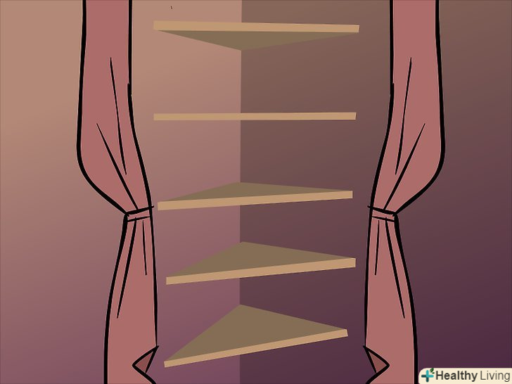 Можна зробити кутові полички. у деяких випадках вільними залишаються тільки кути, і якщо є можливість, скористайтеся цим! Наприклад, знайдіть як створити кутові полички в садовому сараї.- Ще можна знайти інструкцію Як встановити кутові полиці, якщо вам потрібні полички для ванної кімнати.