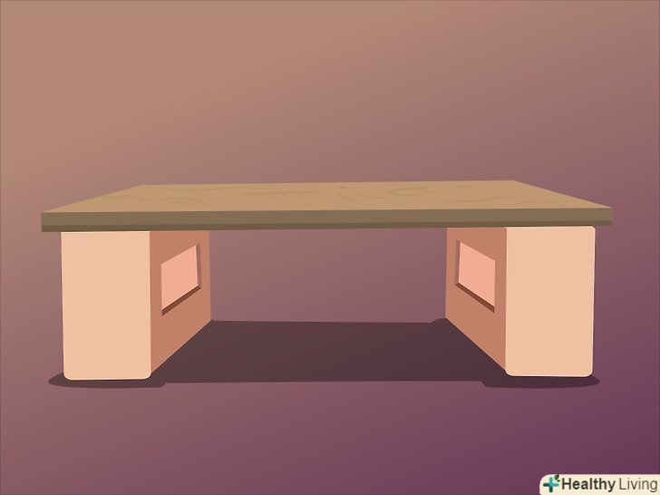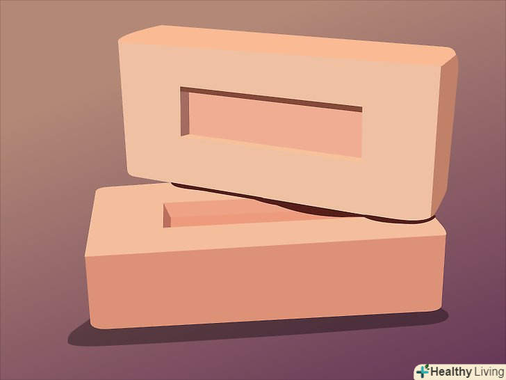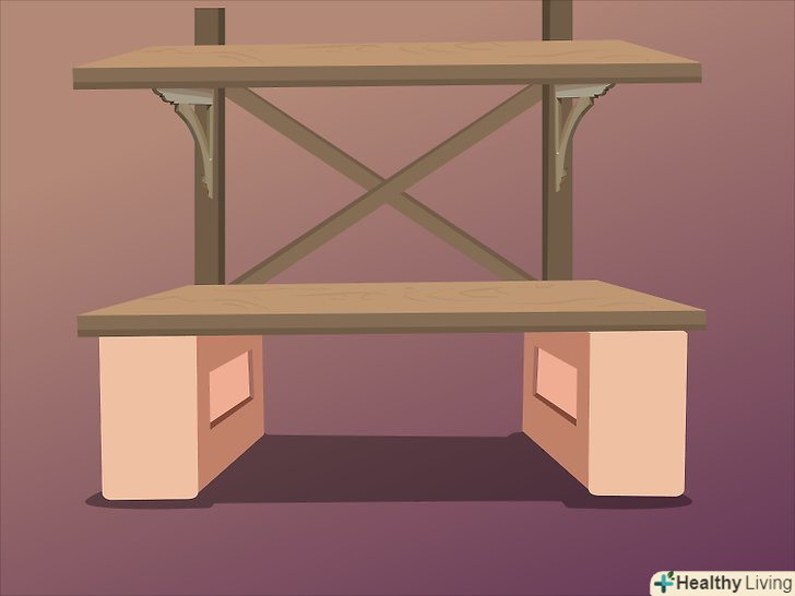 На вибраному місці Встановіть дві цегли поруч. ще дві цегли поставте на протилежній стороні, створюючи основу для полки. Відстань між цеглинами має визначатися довжиною дошки, яка повинна трохи «звисати» по краях (десь на 5см).- Дві цегли по обидва боки потрібні, щоб підтримувати полицю.