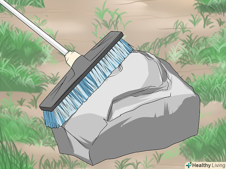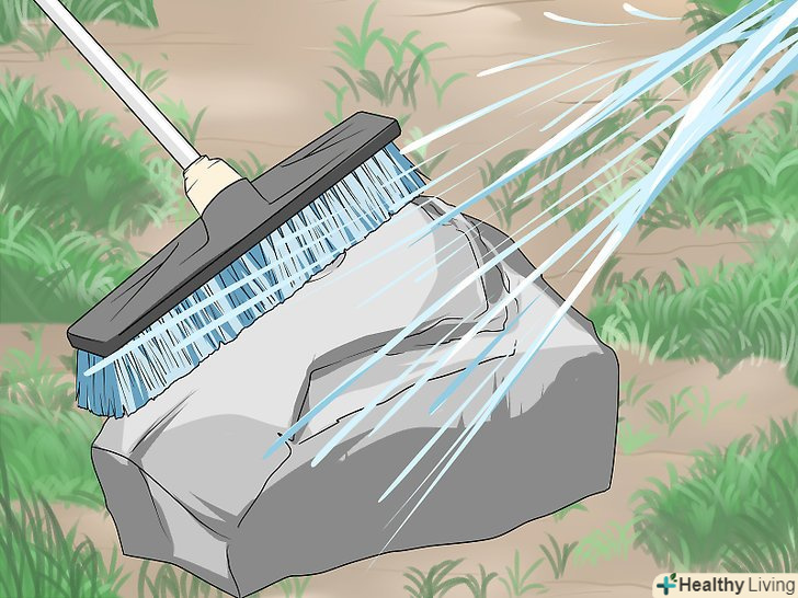 Використовуйте мийку високого тискуДля очищення каменів. Встаньте в стороні від ділянки, який потрібно очистити, і утримуйте наконечник шланга мийки високого тиску під таким кутом, щоб вода і бруд рикошетом не потрапили вам в обличчя. Переміщайте наконечник від одного краю каменів до іншого. Промивайте всі виїмки і тріщини з усіх боків і на поверхні каменю, щоб позбутися навіть від самої неподдающейся бруду. [9]- Не завадить використовувати засоби індивідуального захисту на зразок кофти з довгими рукавами, брюк і захисних окулярів, так як під тиском води частинки сміття можуть розлітатися в сторони.
