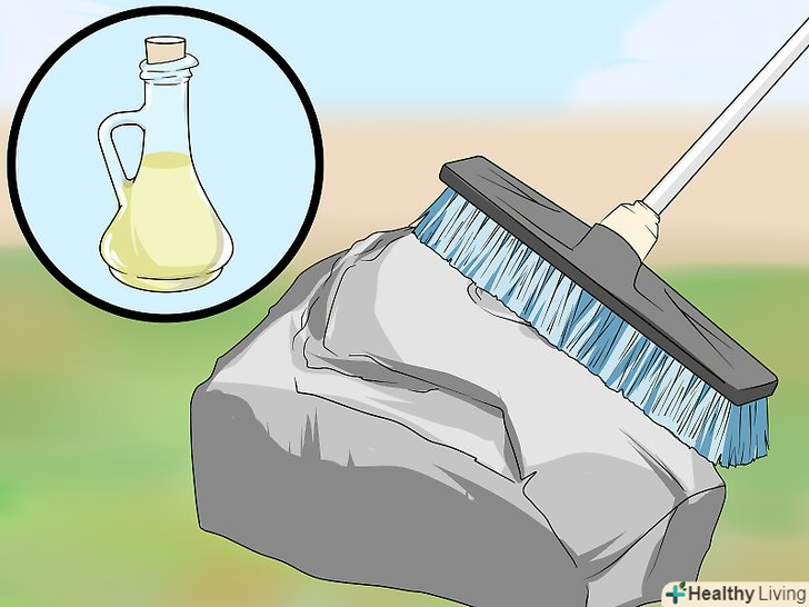 Обробіть камені оцтом, якщо вони покриті цвіллю або грибком. якщо ви виявили на камені сірий або зелений наліт, то причиною може виявитися цвіль або грибок. В цьому випадку камені потрібно обробити білим оцтом і ретельно потерти жорсткою щіткою. В кінці промийте камені водою з садового шланга. [10]- Якщо цвіль не піддається, змішайте ¼ склянки (60 мілілітрів) хлорного відбілювача і 8 літрів води, а потім обробіть камені розчином. Протріть щіткою і промийте чистою водою. Іноді потрібно використовувати розчин двічі, щоб видалити всю цвіль.