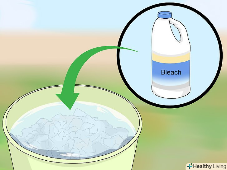 Залийте камені оцтом або водою з відбілювачем. для цієї мети відмінно підходить білий оцет, оскільки він навряд чи зашкодить камені, але напевно відмиє забруднення. Для очищення білих каменів краще використовувати розчин з хлорного відбілювача з водою. Потрібно взяти ¼ склянки (60 мілілітрів) відбілювача на 8 літрів води. Залийте камені розчином. [12]- При роботі з відбілювачем слід надіти щільні гумові рукавички.