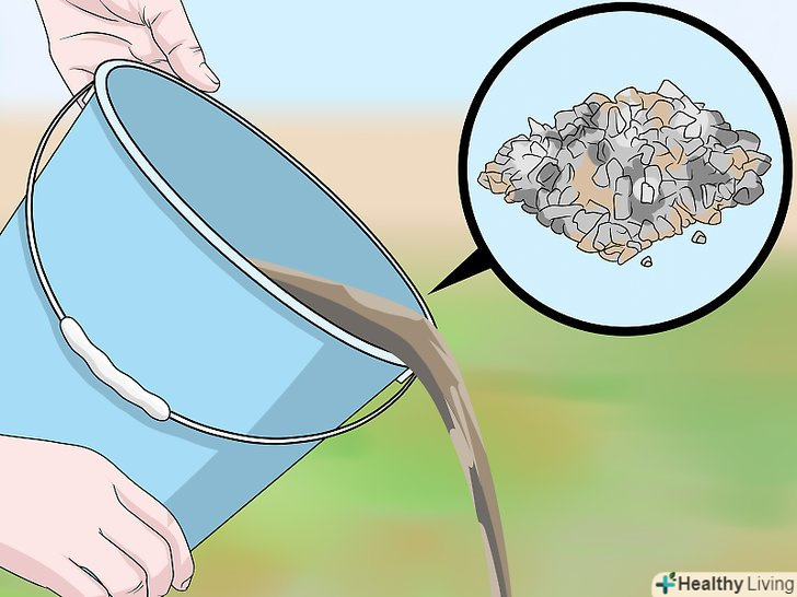 Лопатою пересипте частина каменів в тачку або відро. якщо камені потребують глибокого очищення, то наберіть повну лопату каменів і пересипте в жорстку тачку або у велике відро. Важливо не перевантажувати ємність, оскільки її потрібно буде піднімати. [11]- Цей спосіб дозволяє очистити білі декоративні камені і відновити початковий колір.