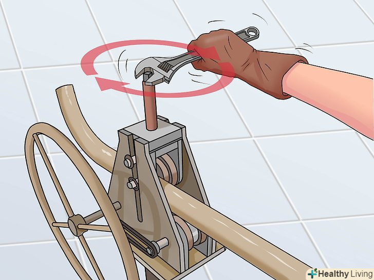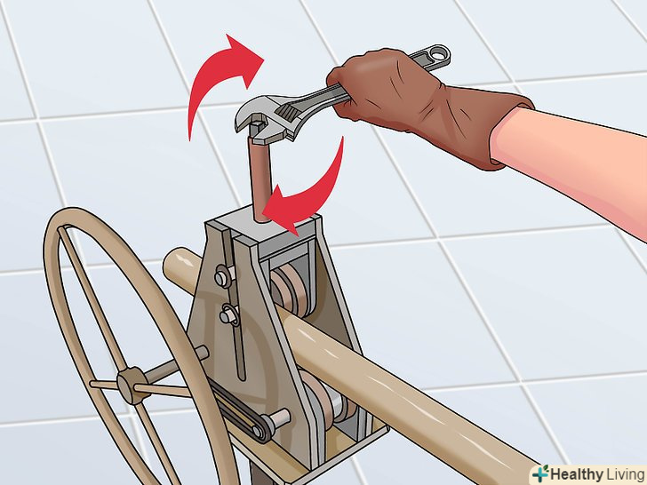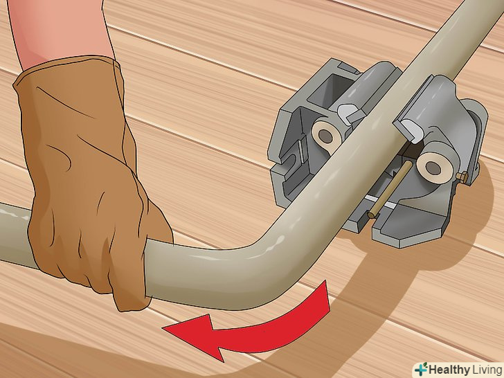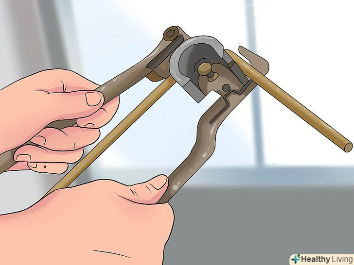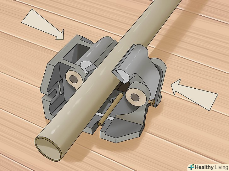 Затисніть трубу в лещатах. закрутіть Лещата, щільно затиснувши трубу; однак не прикладайте занадто великого зусилля, щоб не сплющити трубу.- До деяких лещат додаються спеціальні захвати для циліндричних труб. Проте, можна обійтися і без таких захоплень.