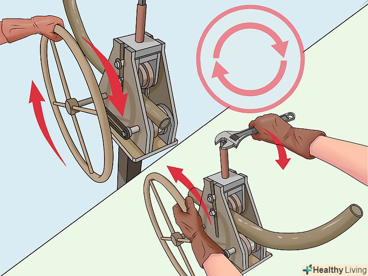 Пропустіть трубу в зворотному напрямку. колесо верстата можна прокрутити в зворотному напрямку, так що Ви зможете пропустити трубу з іншого боку.