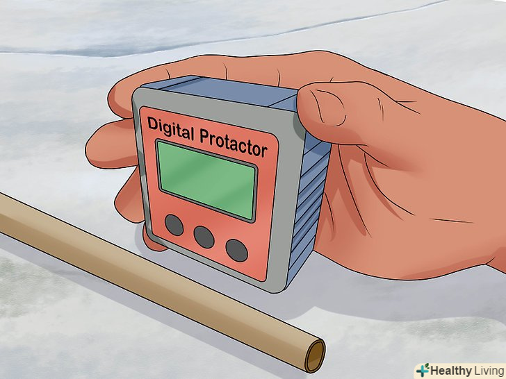 Виміряйте необхідний кут вигину. на трубозгинальному верстаті неможливо виставити необхідний Вам кут, тому його треба контролювати додатково.- Найпростіше рішення полягає у використанні цифрового кутоміра, який можна прикріпити до труби перед її згинанням. В процесі загинання труби ви зможете спостерігати кут її вигину.