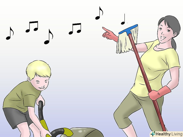 Нехай прибирання буде веселою. Ви можете грати, слухати музику, навіть влаштовувати гонки під час прибирання, щоб всім було весело, незалежно від віку.