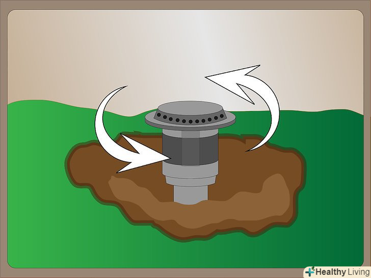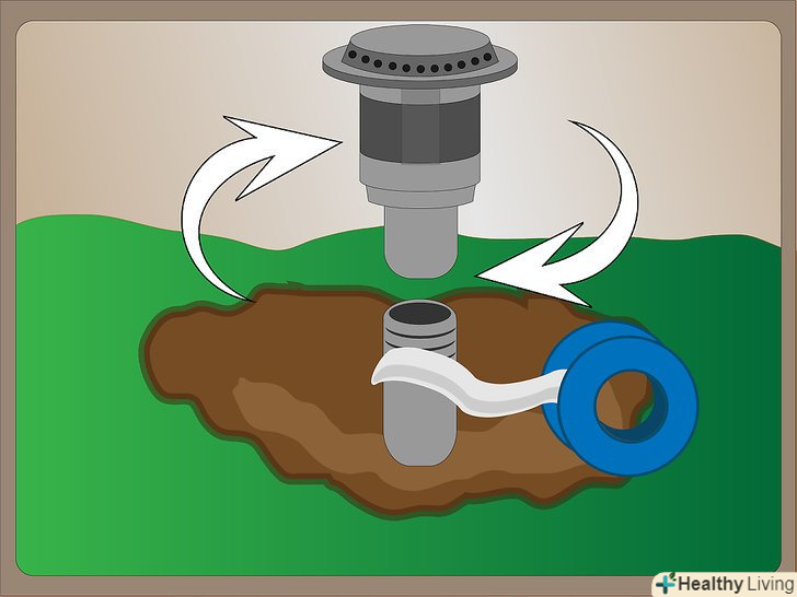 Покрутіть насадку, щоб вирівняти зі схемою розбризкувача так, щоб він поливав газон, а не прилеглу зону.- Перед повторним заповненням отвору, включіть розбризкувач і переконайтеся у відсутності витоків навколо стояка. Затягніть його як слід (або додайте більше тефлонової стрічки), щоб усунути витік.