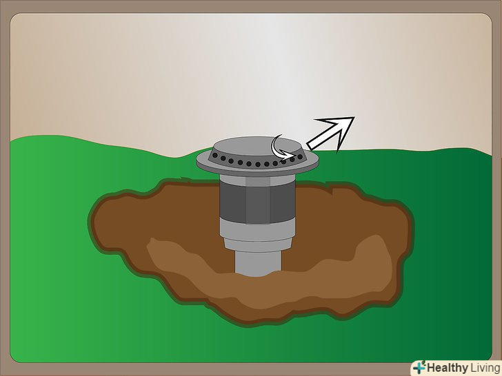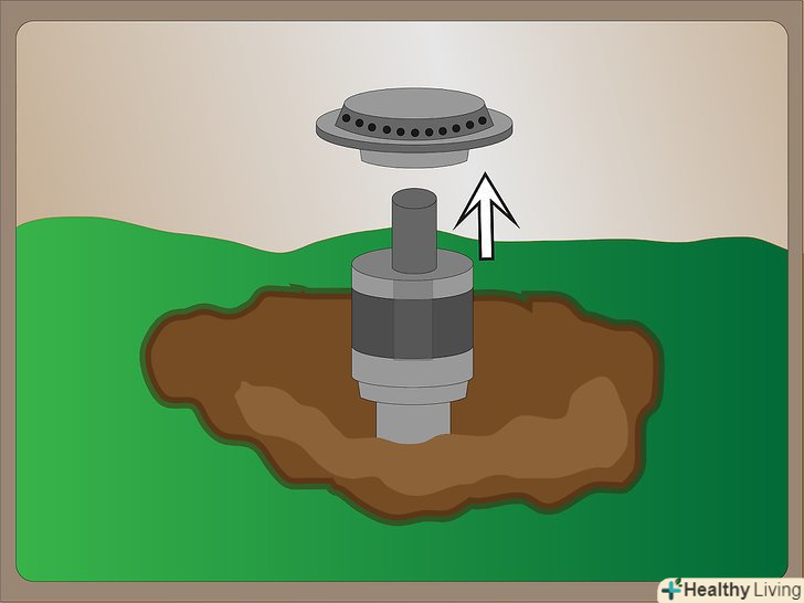 Розріжте газон над головкою розбризкувача, зробивши за допомогою зазубреного ножа або маленької лопати (з гострим наконечником) отвір діаметром близько 15 см. (будьте обережні, не копайте занадто глибоко, щоб не пошкодити водяні шланги.) Будь ласка, запам'ятайте: якщо у вас є 15-сантиметровий розпилювач або більше, велика ймовірність, що труби приєднані до голівки через бічний вхід (всього лише приблизно в 5 см під землею). Зверніть на це особливу увагу, щоб уникнути розрізання трубок до цього бічного впуску.