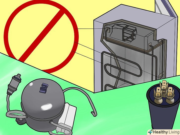Від'єднайте дроти на всіх ділянках, крім компресора і насоса. Підключіть відповідний кабель електроживлення до конденсатора, а зелений провід до основи насоса.