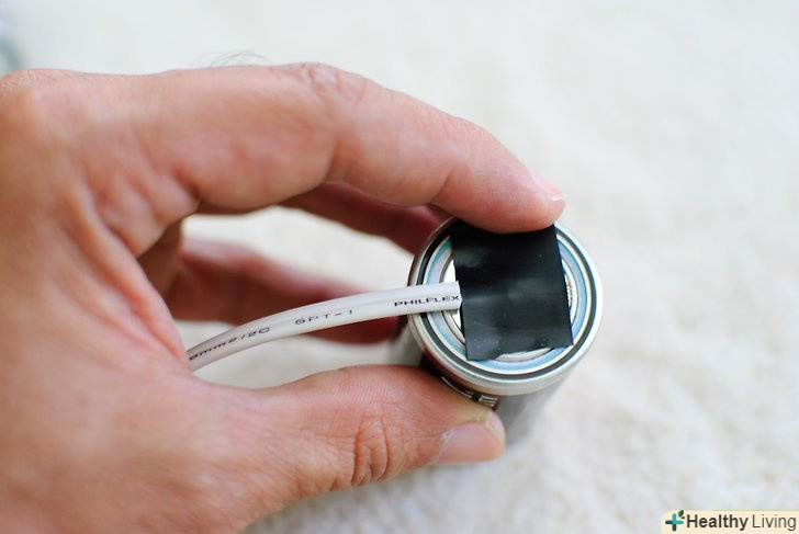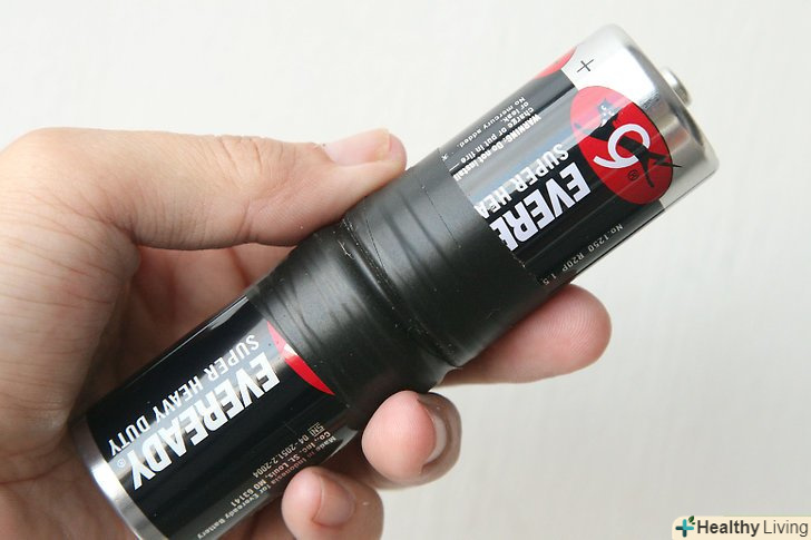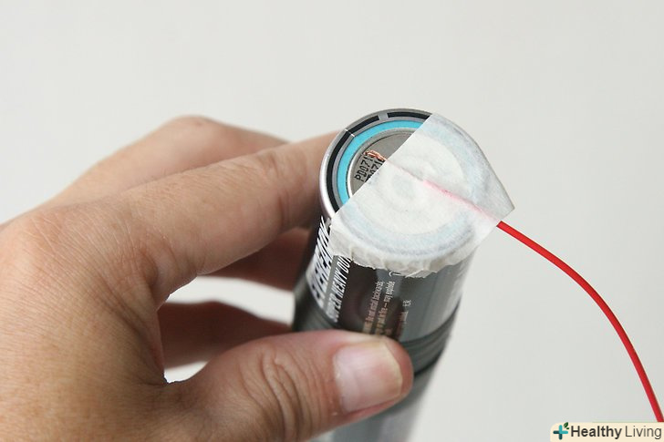 Приклейте дріт до негативного полюса батарейки. негативному кінець-плоский. Для цього підійде малярський скотч.