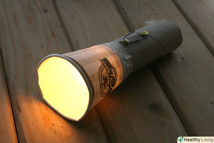 Заклейте один кінець картонки від рулону туалетного паперу / картону, щоб не було просвіту. світло не повинен просочуватися, адже таким чином яскравість зменшиться, а це означає, що ліхтар неефективний.- Якщо вам ніколи раніше не доводилося використовувати ізоляційну стрічку чорного кольору, настав відповідний момент.