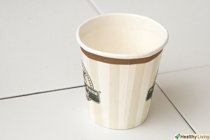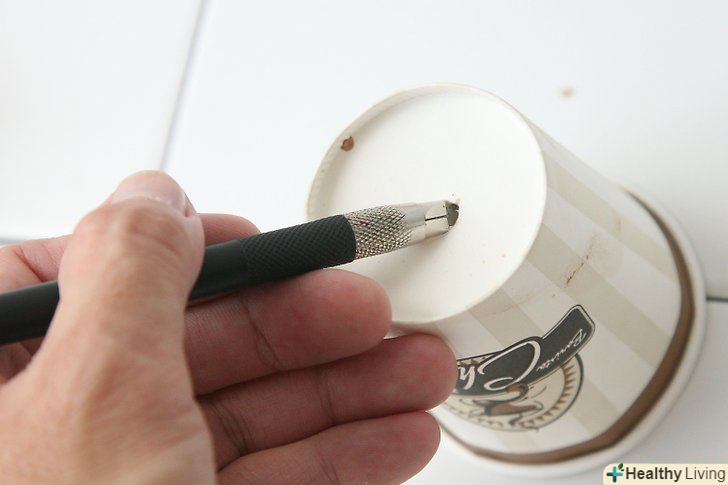 Виконайте в паперовому стаканчику невелику дірку для лампочки. Просуньте лампочку через дірку і з'єднайте стаканчик з картонним підставою за допомогою скотча.
