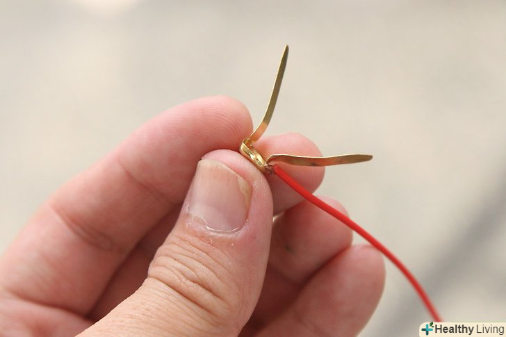 Прикріпіть дріт до негативного ( - ) полюса однієї з батарейок. переконайтеся, що він добре закріплений, або світло буде блимати.- Замість дроту можна використовувати олов'яну фольгу, але вона менш надійна і з нею важче працювати.