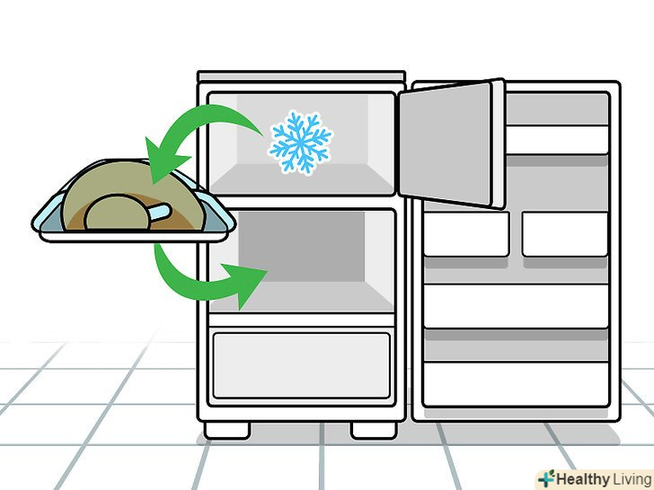 Розморожуйте Заморожені продукти в холодильному відділенні холодильника. незважаючи на те, що занурення заморожених продуктів у воду може прискорити розморожування, це призводить до необгрунтованого підвищення витрати води. Постарайтеся все планувати заздалегідь і перекладати необхідні Заморожені продукти для розморожування на ніч в холодильне відділення. [17]