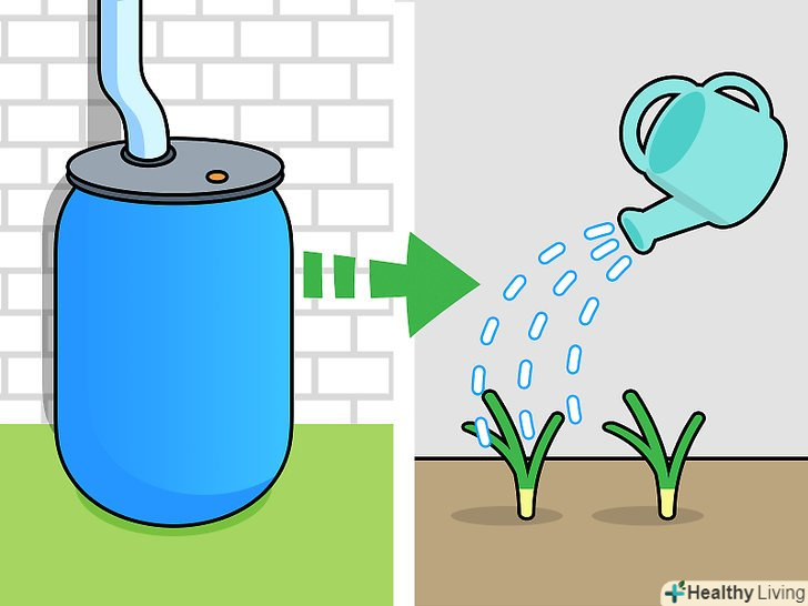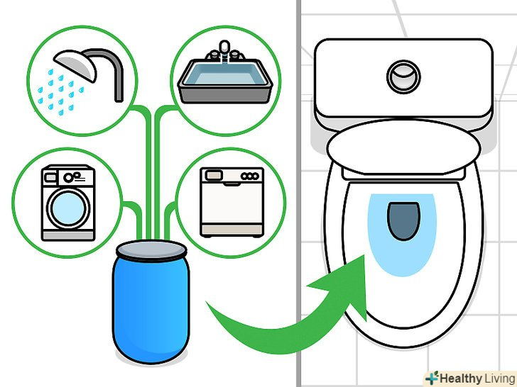 Використовуйте відпрацьовану воду для змиву унітазу або поливу газону. відпрацьована вода — це вода, що залишилася після використання пральної машини, Посудомийки, душа або раковини. Ймовірно (залежно від фактичного місця вашого проживання), у вас буде можливість збирати відпрацьовані води і направляти їх на змив унітазу і полив газонів, щоб уникнути марнотратного витрати води. [30]- При поливі рослин не використовуйте відпрацьовану воду для поливу того, що будете потім їсти, так як таку воду не можна вважати чистою.