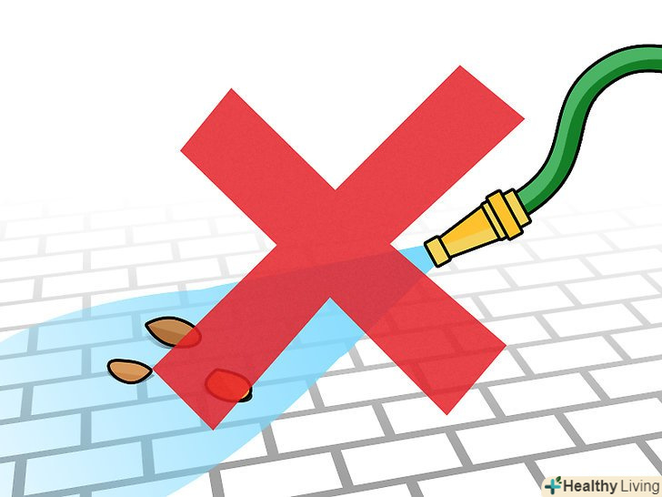Не мийте тротуари та під'їзні доріжки зі шланга. якщо вам необхідно очистити тротуар або під'їзну доріжку, візьміть мітлу, граблі або садовий повітродув, щоб здути сухий сміття. Якщо і після цього доріжка або тротуар потребуватиме додаткового очищення, скористайтеся відром води або дозвольте дощу доробити вашу роботу. Використання шланга призведе лише до марної витрати води. [28]