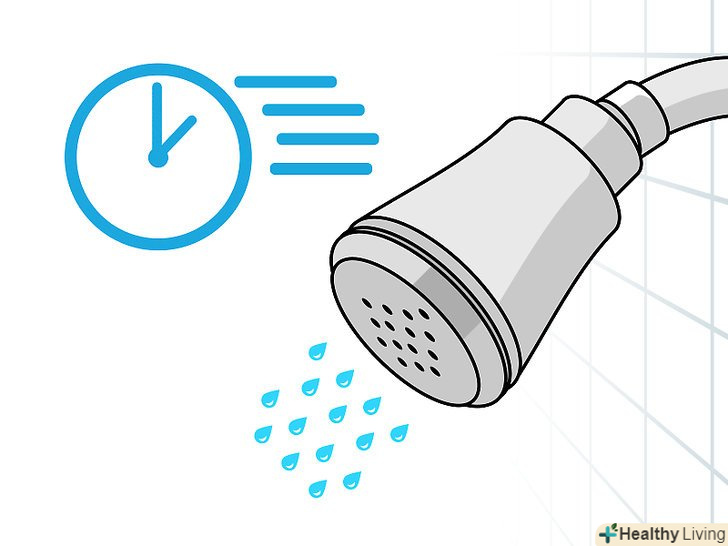 Навчіться швидше приймати душ. беріть з собою у ванну кімнату годинник або таймер і намагайтеся скоротити звичний час душа або включайте одну мелодію і прагнете завершити всі процедури до її закінчення. Скорочення часу прийому душу навіть всього на 2 хвилини може заощадити вам до 40 літрів води. [7]- Під час душу витрачається приблизно третина води, яка могла бути використана при прийомі ванни (але все залежить від її конкретних розмірів і глибини). Тому розумно буде відмовитися від ванн і замінити їх швидким душем. [8]