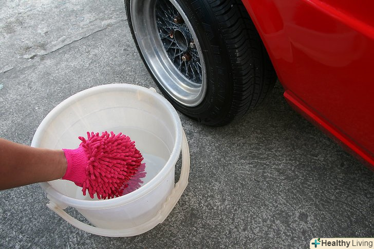 Збийте з шланга бруд і пил. якщо немає можливості або незручно користуватися шлангом, наприклад, ви миєте машину на природі, наберіть воду у відро і використовуйте ганчірку або рукавицю з мікрофібри. Мийте знизу вгору, щоб уникнути пропущених ділянок.