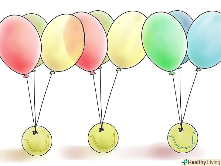 Влаштуйте вечірку з тенісними м'ячами. тенісні м'ячі можуть бути використані навіть на вечірках.- Вони можуть бути використані як якоря для гелієвих кульок на вечірках. Зв'яжіть вузлом кілька стрічок від кульок. Зробіть розріз на м'ячі у формі літери "Х" і вставте туди вузол. Можете насипати в м'яч пісок, щоб точно переконатися в тому, що кулі не полетять.