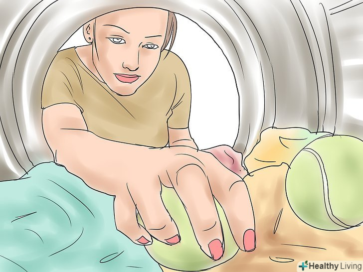 Використовуйте старі тенісні м'ячі для прання. тенісні м'ячі можуть допомогти Вам у пранні; тільки переконайтеся в тому, що вони чисті:- Киньте пару м'ячів в пральну машину, і вони будуть розділяти зчепилася одяг (тенісні м'ячі не дають простирадлах або іншим довгим тканинам злипатися, таким чином, вони будуть висихати швидше і ретельніше). Ви можете покласти тенісні м'ячі для прання в невелику сумку, щоб з легкістю їх діставати, коли вони вам знадобляться.