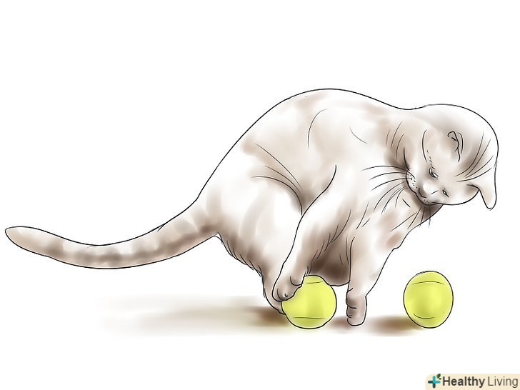 Розважайте і забезпечте вихованців за допомогою старих тенісних м'ячів. можна знайти величезну кількість способів застосування тенісних м'ячів, коли ви маєте справу з тваринами. Тільки переконайтеся в тому, що порваний м'яч не застрягне в зубах, шкірі, хутрі або інших частинах тіла вашого вихованця. Якщо це можливо, краще використовуйте половинки м'яча або цілий м'яч. Ось кілька ідей для початку:- Використовуйте тенісні м'ячі як іграшку для вашої собаки або кішки. Існує стільки всього, що ви можете зробити з м'ячами: кидати їх і катати, щоб пограти з вашим вихованцем, або ж використовувати в якості безпечних маркерів для залучення уваги тварини.