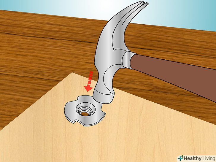 Вставте т-гайку в отвір молотком з верхньої частини підстави вниз. продовжуйте, поки вона не стане врівень і не залишиться ніякого простору між верхом вашого столу і металом.