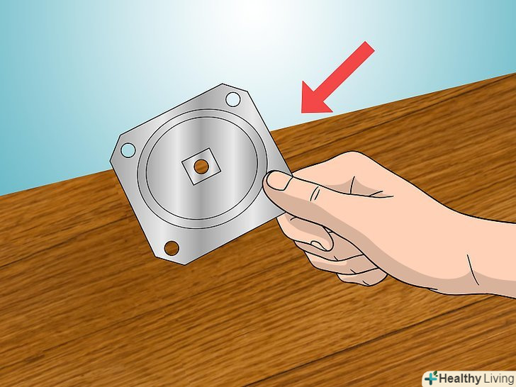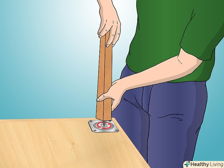Просвердлите чотири отвори через основу вашої стільниці. переконайтеся, що вони знаходяться на однаковій відстані, щоб стіл стояв рівно. Ця форма кріплення ніжок є найкращою для необроблених столів, які будуть покриті, оббиті або закриті іншими видами дерева.- Переконайтеся в тому, що отвір відповідає розміру вашої Т-подібної гайки і не більше.