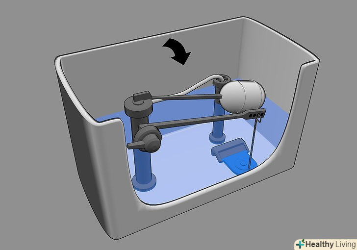 - Існує ще один стрижень, який включає і відключає потік води в бак. Рівень води можна контролювати за допомогою плаваючого кульки на стрижні або за допомогою механізму, який повертається, подібно циферблату.