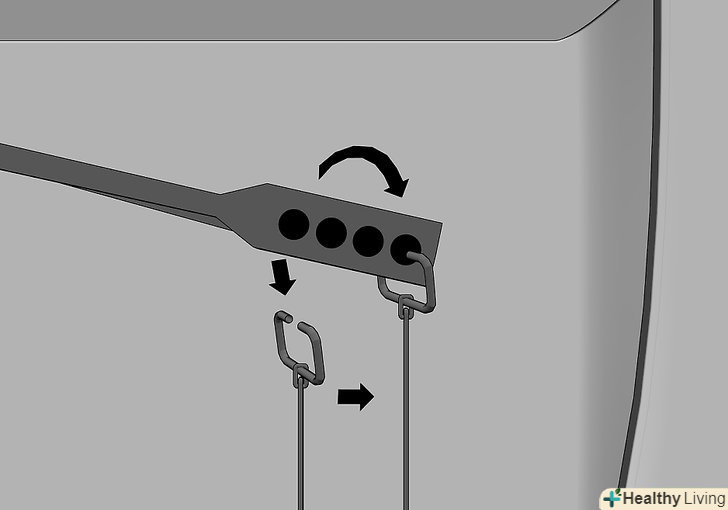 - Переміщення гака на ланцюзі в інший отвір на панелі.