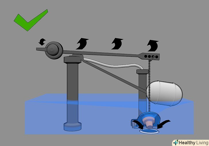 Замініть ланцюг або дріт на підйомній панелі, якщо клапан не піднявся з отвору, і ви бачите, що вони не з'єднані. взагалі, вони прикріплені до отворів у стрижні. Спочатку використовуйте середнє отвір. Спробуйте інше, якщо заслінка не закривається правильно.