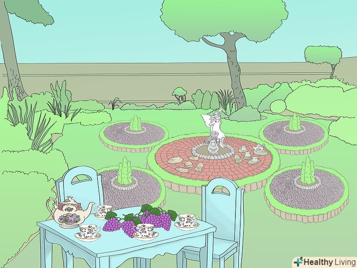 Додайте незвичайні чарівні деталі. чарівні столики і стільчики можуть бути з камінчиків різних розмірів. Придбайте маленький чайний сервіз в дешевому магазині і поставте на стіл, щоб феї могли попити чай.