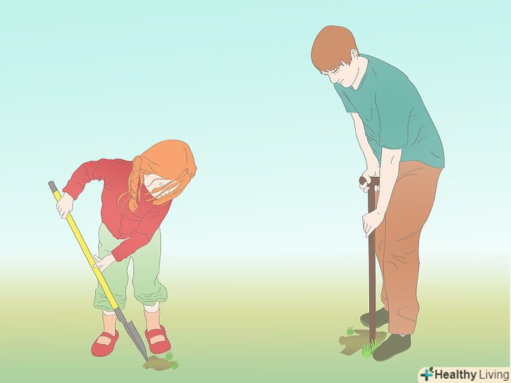 Копайте сад. робіть це разом з вашою дитиною так, щоб грунт був готовий під висадку, і було легко розмістити чарівні елементи. При необхідності удобрити грунт.