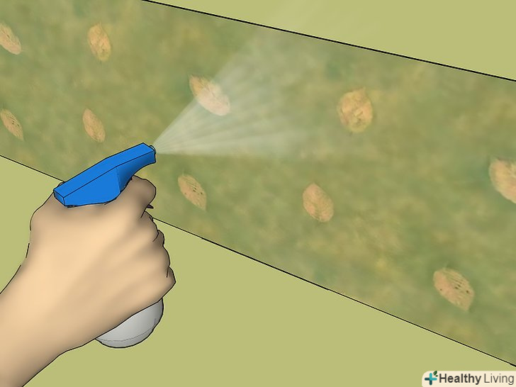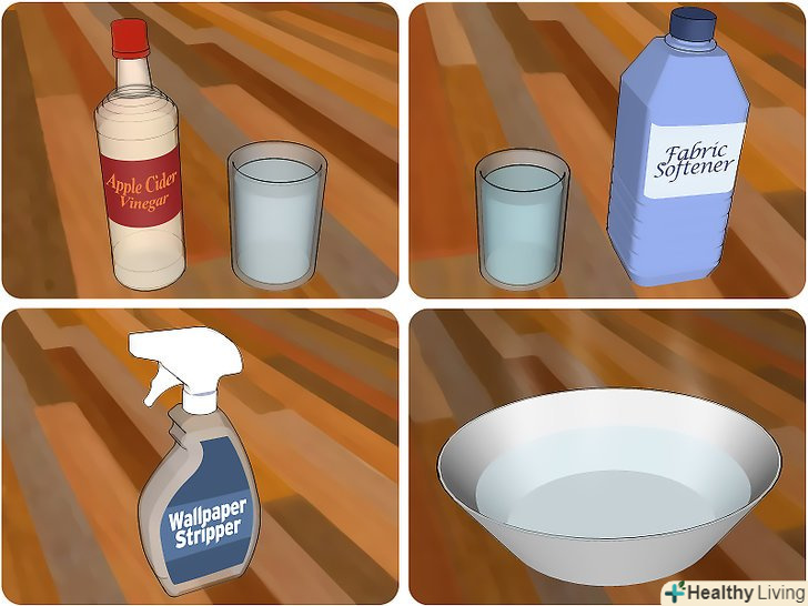 Наповніть пульверизатор розчином для зняття шпалер. [1] існує цілий ряд розчинів, які можна використовувати в даному випадку для розчинення клею. Виберіть що-небудь з наступних варіантів:- Яблучний оцет і вода. Цей натуральний розчин добре руйнує клей, але від нього може залишитися запах на стіні. Користуйтеся ним, якщо тільки ваш бордюр наклеєний тільки на фарбу, а не на шар шпалер.