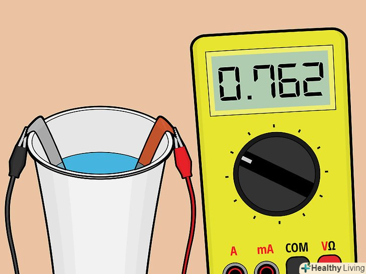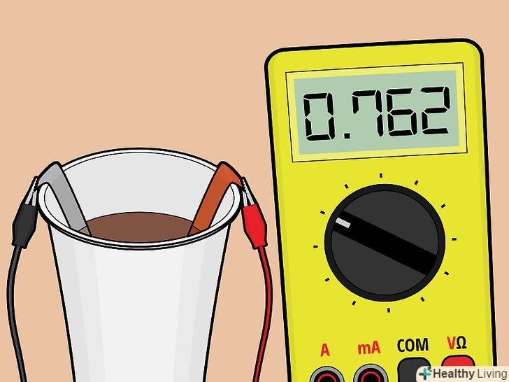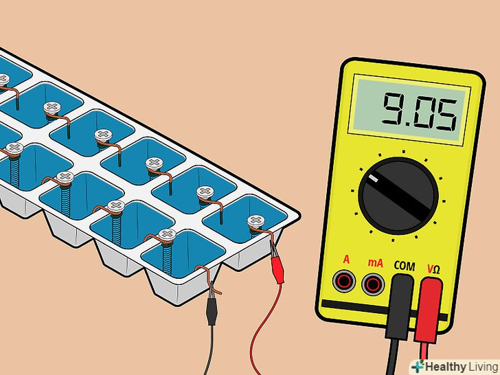 Випробуйте гальванічний елемент. Підключіть вільні кінці проводів до вольтметра. Батарея з 14 осередків повинна давати приблизно 9 вольт.