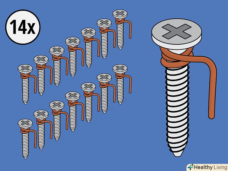 Візьміть 14 шурупів і обмотайте їх мідним дротом. два рази оберніть мідний дріт навколо кожного шурупа під його капелюшком. Після цього загніть гачком вільний кінець кожної зволікання. За ці гачки ви підвісите шурупи на край форми для льоду.- Можна заздалегідь нарізати мідний дріт на шматочки, довжини яких вистачить на обмотування шурупа (з невеликим запасом для гачка), або обмотувати кожен шуруп і після цього обрізати дріт.