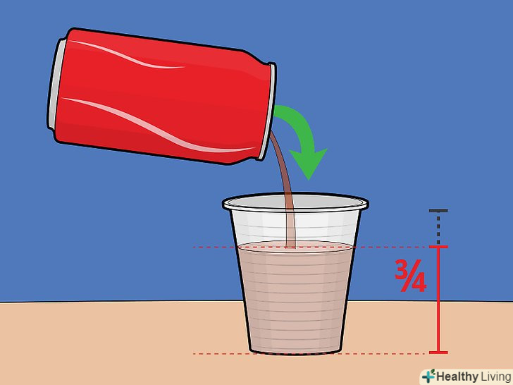 Приблизно на 3/4 наповніть пластиковий стакан газованою водою. немає необхідності використовувати саме пластиковий стакан. Важливо, щоб він не містив металу. Цілком підійде стакан з пінополістиролу або паперу.