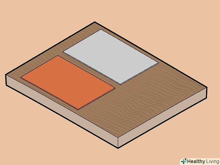 Покладіть алюмінієву і мідну пластинки на дерев'яну дошку. якщо у вас немає дошки, можна використовувати якусь плоску поверхню з непровідного матеріалу, наприклад пластика.