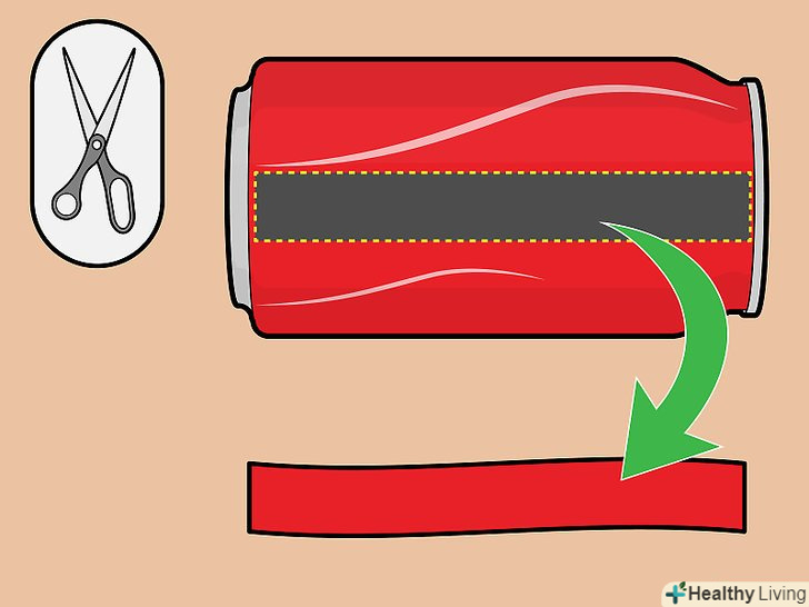 Виріжте з банки алюмінієву смужку. Візьміть порожню банку і виріжте з її бічної стінки смужку шириною 2 сантиметри. Ця смужка повинна бути трохи довше висоти пластикового склянки, хоча нічого страшного, якщо це неможливо — в такому випадку просто загніть верхній край смужки і повісьте її на ободок склянки, так щоб вона опускалася в рідину.- Щоб не розрізати банку, можна придбати смужку алюмінію в господарському магазині.