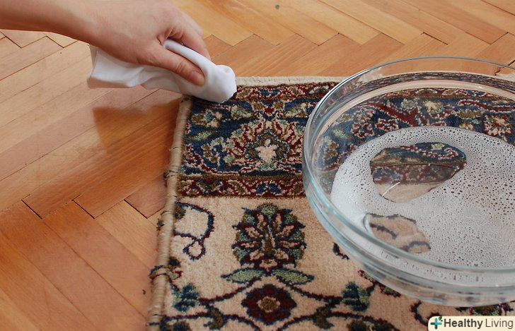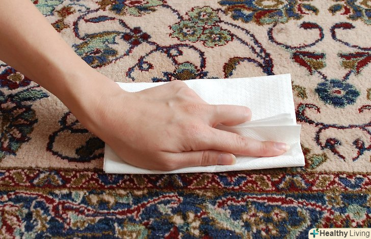 Видаліть з килима зайву рідину. промийте пляму чистим кухонним рушником або міцними паперовими рушниками. Чи не тріть пляма, а обережно втирайте в нього розчин.