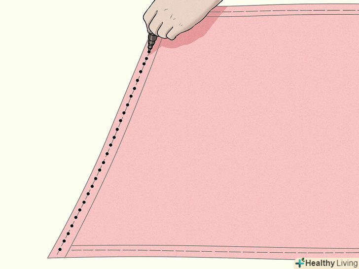 Підверніть припуск на шов на верхньому і нижньому кінцях довжини тканини. зробіть припуск шириною 1,25 см, причому двічі. Прошивши.