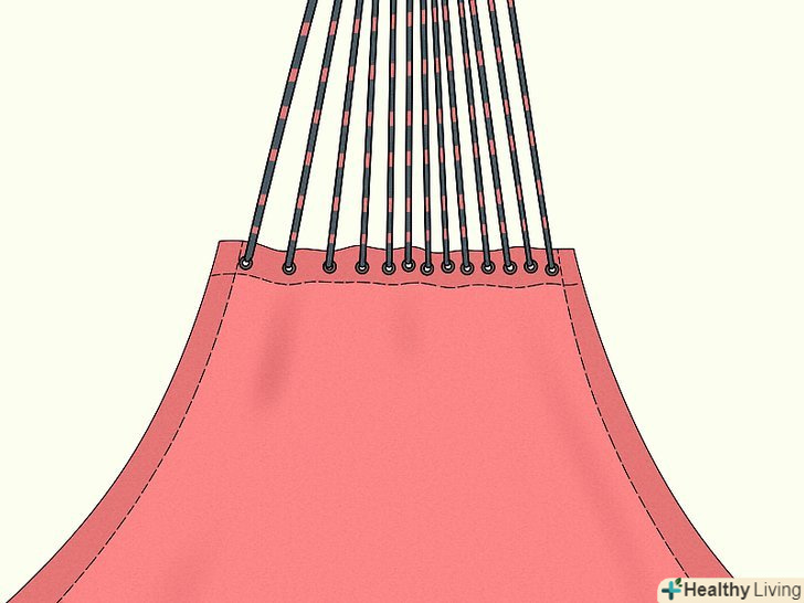 Прикріпіть незв'язані кінці мотузки до відповідних люверсів. додаючи нові мотузки, використовуйте міцний вузол, наприклад, альтанка. Щільно затягніть і перевірте міцність гамака.