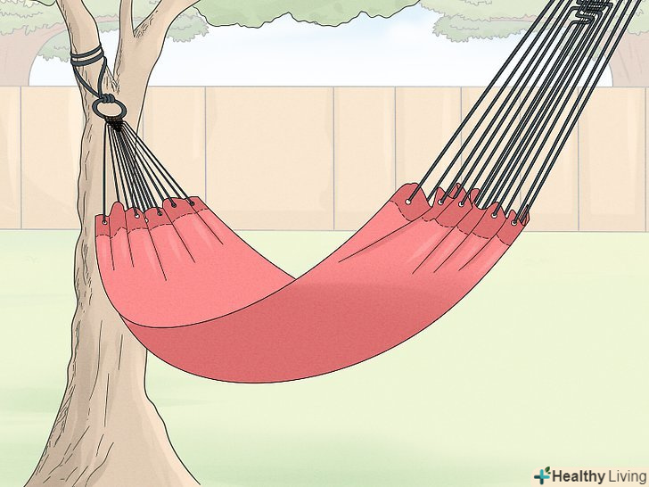 Повісьте його на деревах або стовпах. щільно затягніть. Перш ніж лягти, перевірте, чи витримує гамак вашу вагу.