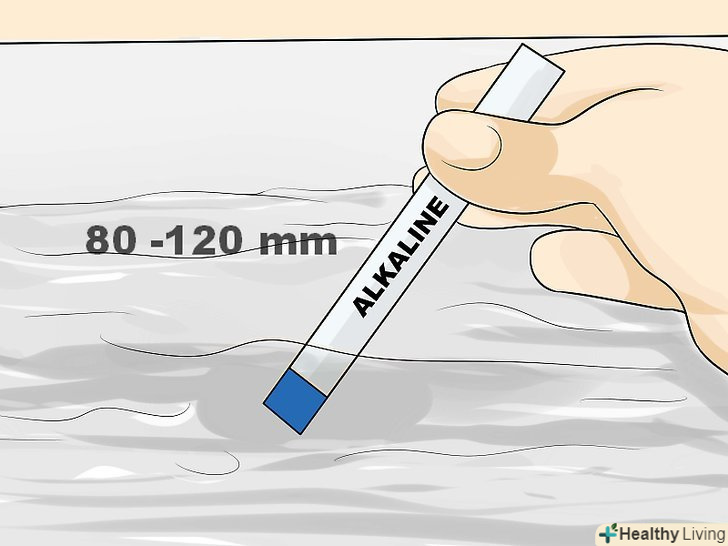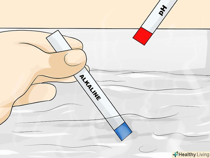 Перевірте загальну лужність ванни. навіть якщо ви підозрюєте, що лужність води у ванні висока, ви повинні підтвердити свої підозри тестуванням за допомогою смужки або комплекту для перевірки лужності.- Ідеальний інтервал лужності знаходиться між 80 і 120 ч./млн.
