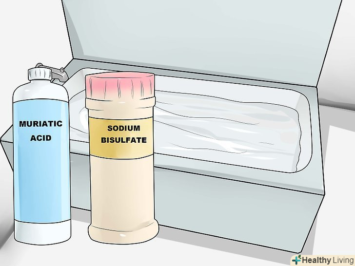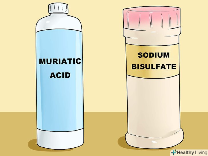 Виберіть відповідну хімічну речовину. щоб знизити і загальну лужність, і рН вам потрібно додавати кислоту. Розчин соляної кислоти (хлороводнева кислота, розбавлена до 20 відсотків) і сухий бісульфат натрію є найбільш популярними варіантами. [3]- Кислота розчиняється у воді, підвищуючи концентрацію іонів водню і знижуючи рН.