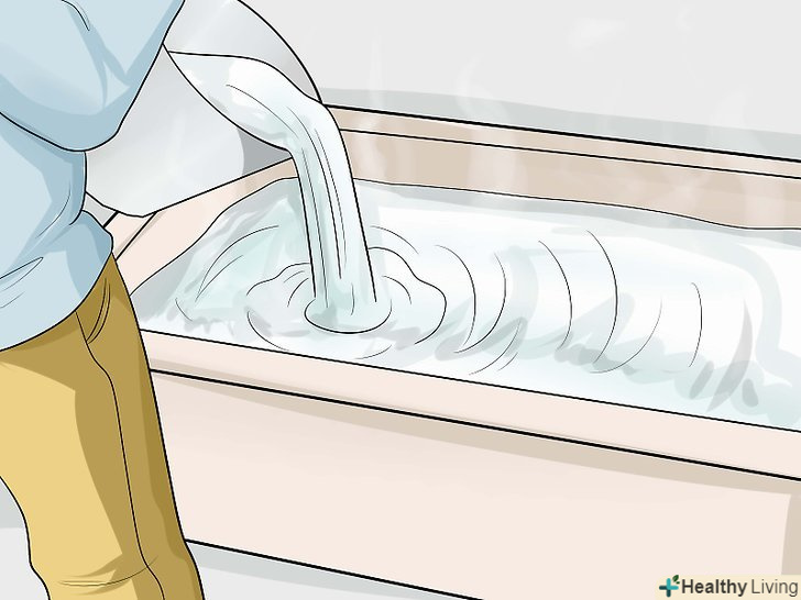 Влийте у воду розчинений засіб. повільно влийте розчинений засіб в центр джакузі.- Вливайте кислоту не відразу, а поступово. Надмірно швидке вливання може привести до пошкодження стінок, дна і обладнання джакузі.