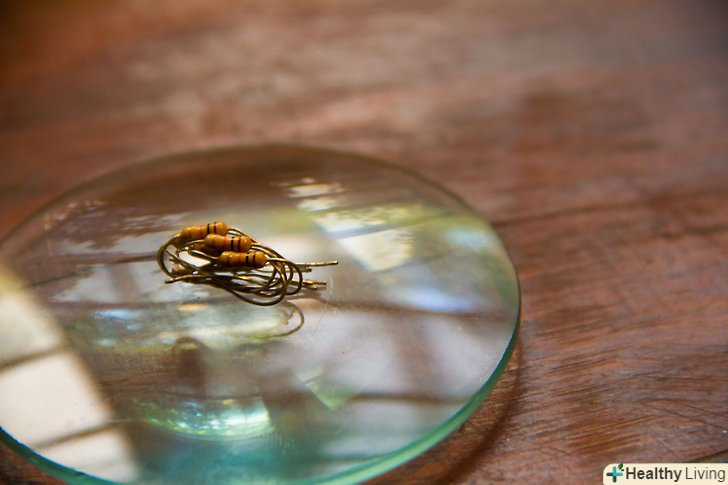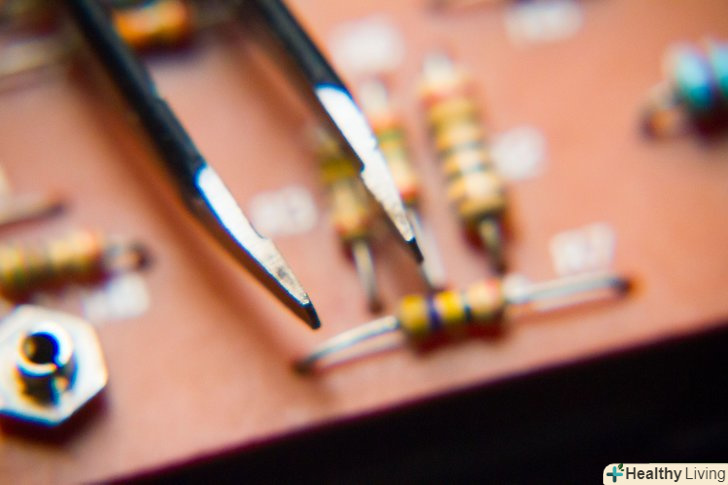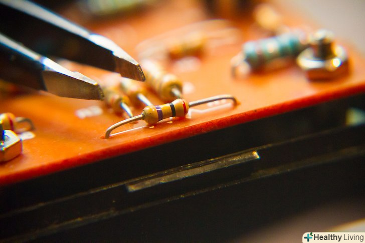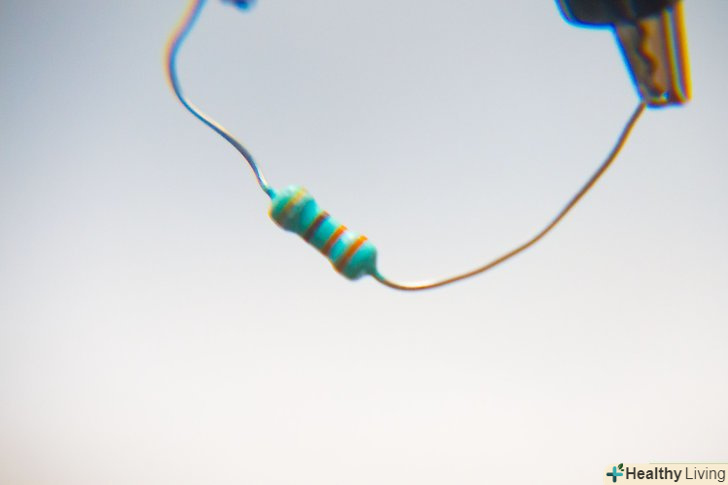Від'єднайте резистор від ланцюга. вимірювання опору резистора, не відключеного від ланцюга, дасть неправильні результати, оскільки буде містити і опір частини цього ланцюга.- Від'єднайте один контакт резистора від ланцюга. Не має значення, який саме з двох контактів ви відключите. Для від'єднання резистора просто витягніть його. Якщо він припаяний, розплавте паяльником припій і дістаньте резистор пінцетом. Паяльник можна придбати в магазині електротоварів або господарському магазині.