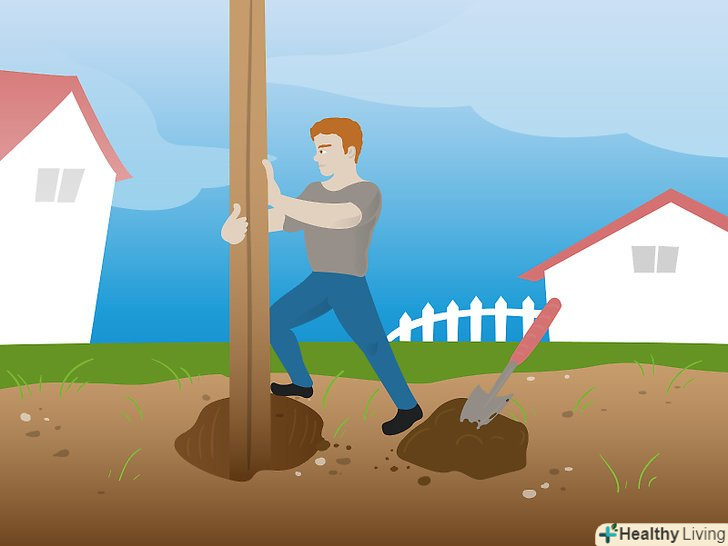 Викопайте траншею навколо стовпа за допомогою лопати. Траншея не повинна бути глибокою, приблизно 30 см. усуньте бруд безпосередньо навколо стовпа, або навколо бетонного кріплення, яке утримує стовп.